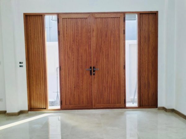 ชุดประตูบานเปิดคู่ทึบแบบลอนพร้อมช่องแสง