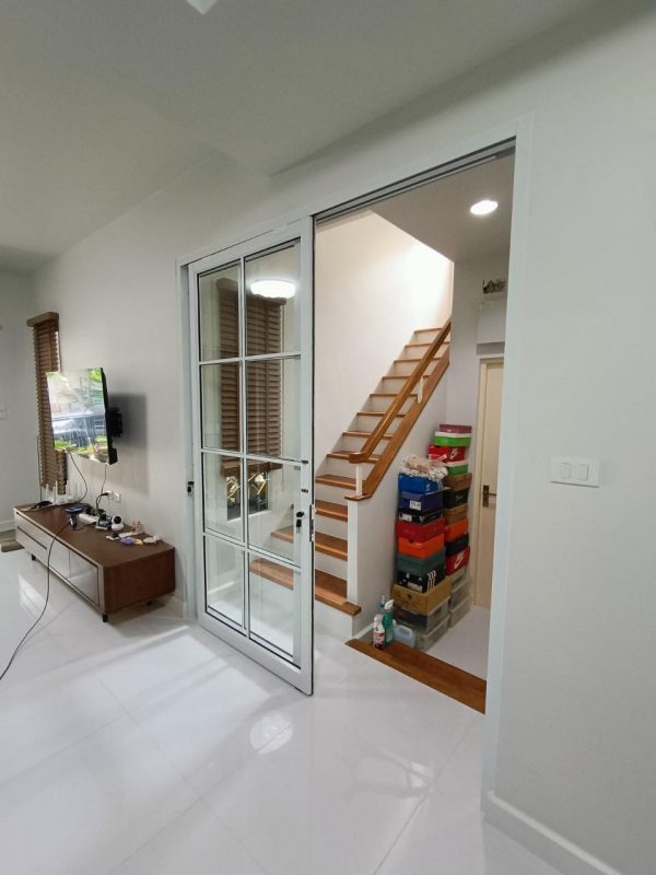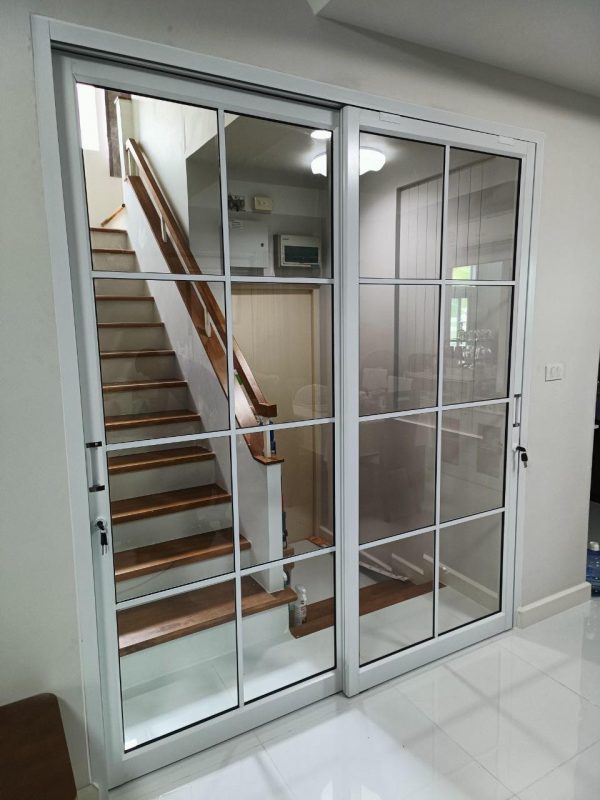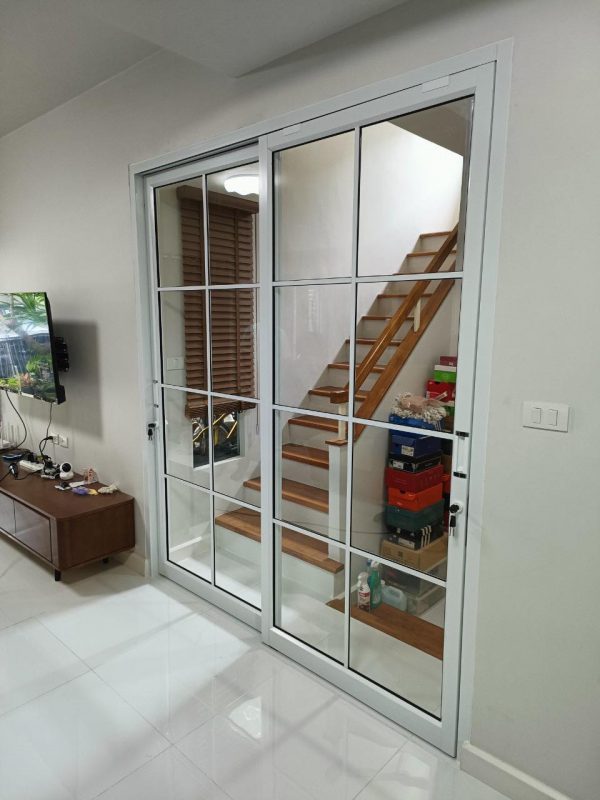 ชุดประตูบานเลื่อนสลับรางบน พร้อมแปะลายลูกฟัก
