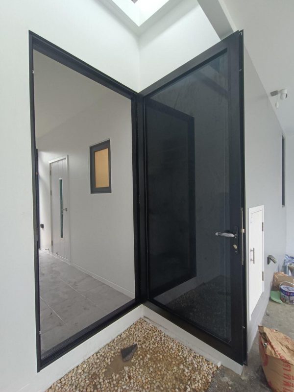 ชุดประตูบานเปิดแบบมีวงกบบังใบ