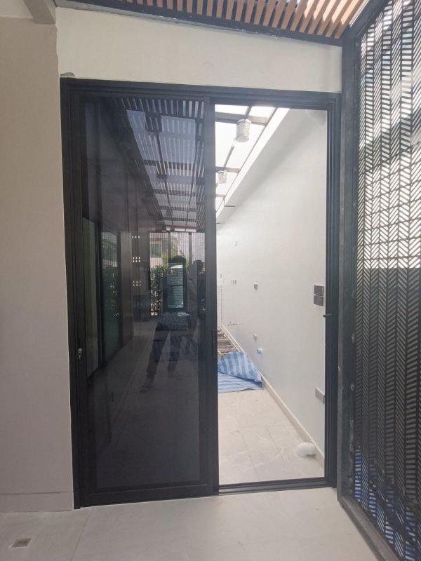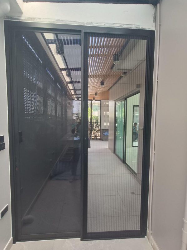 ประตูบานเลื่อนสลับ พร้อมมุ้งจีบแบบครึ่งบาน
