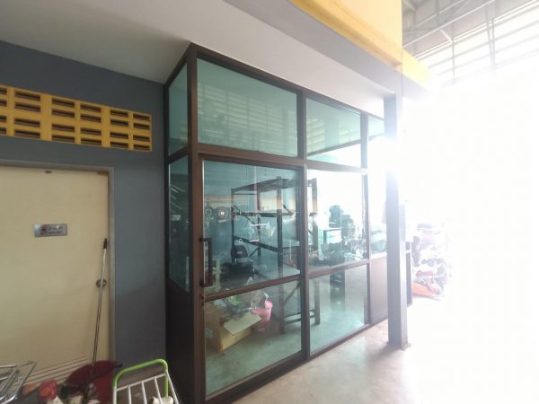 ประตูบานเลื่อนรางแขวนบน พร้อมช่องแสง และลูกฟูกล่าง