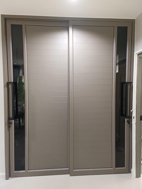 ชุดประตูบานเลื่อนสลับรางบน ลูกฟูก+ช่องแสงข้าง