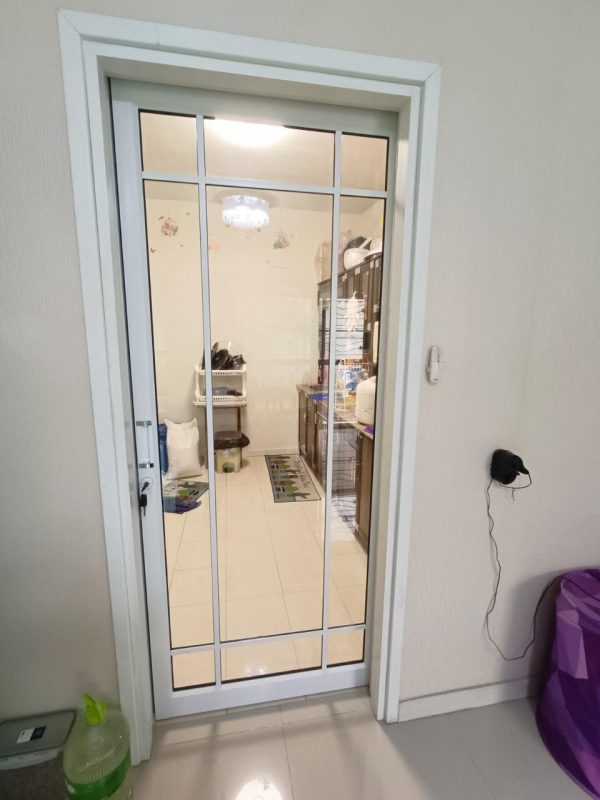 ประตูบานเลื่อนรางแขวนเดี่ยว พร้อมแปะลายลูกฟัก