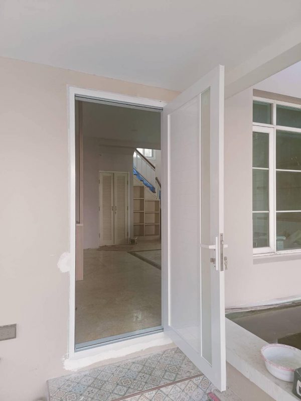 ชุดประตูบานเปิด ลูกฟูกเรียบพร้อมช่องแสงข้าง