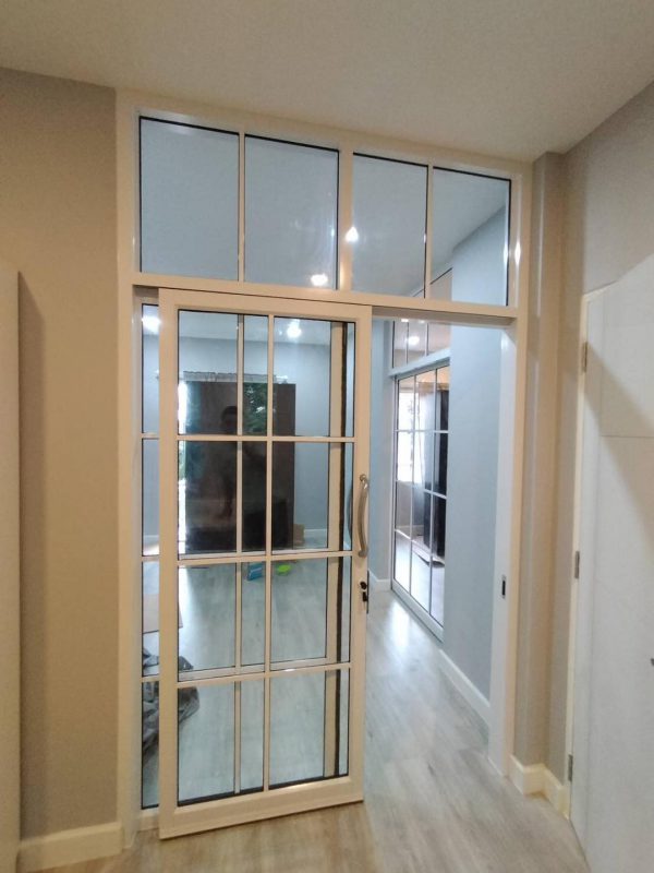 ประตูบานเลื่อนรางแขวนพร้อมช่องแสง