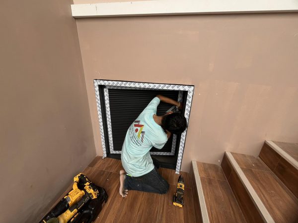 บานเกร็ดระบายอากาศอะลูมิเนียม พร้อมมุ้งกันแมลงในตัว