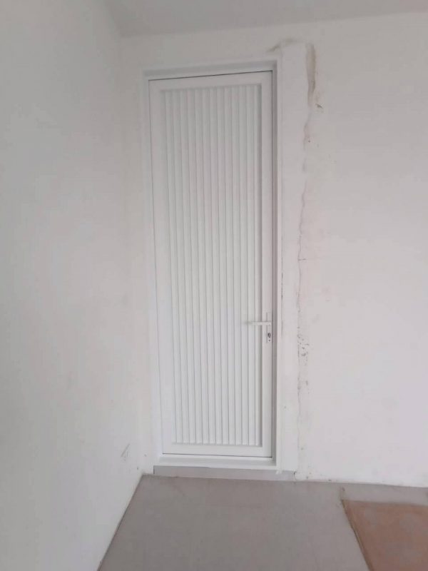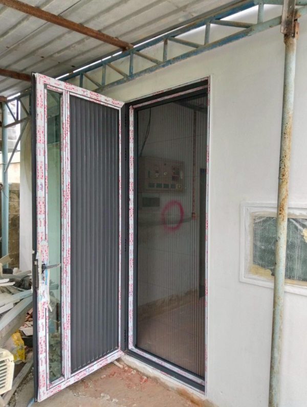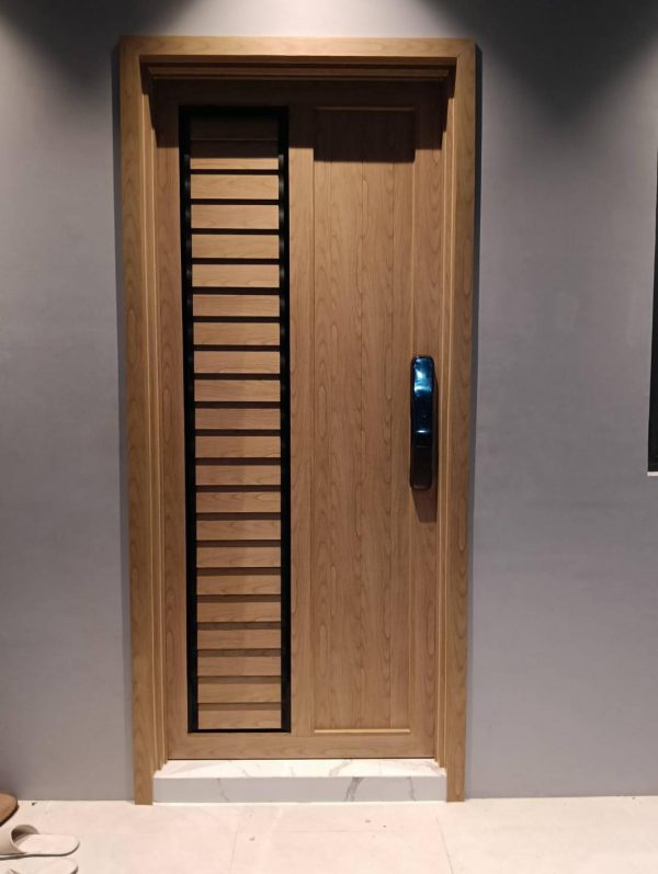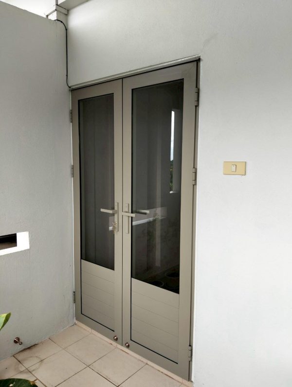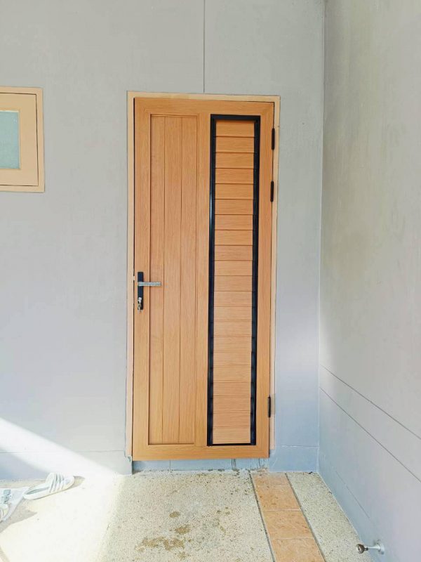 ประตูบานเปิดแบบทึบ พร้อมช่องเกล็ดเปิด–ปิดระบายอากาศ มุ้งจีบในตัว