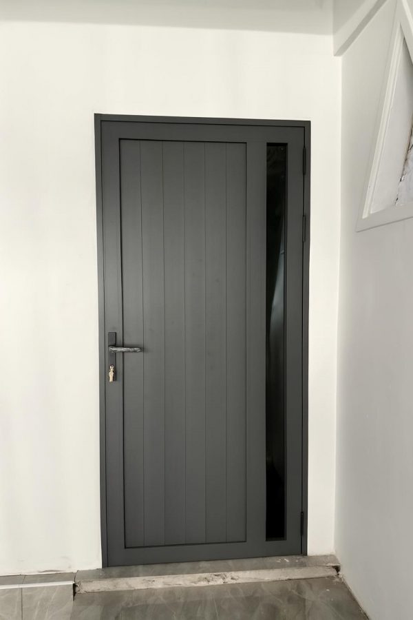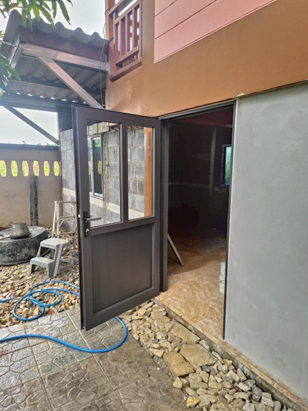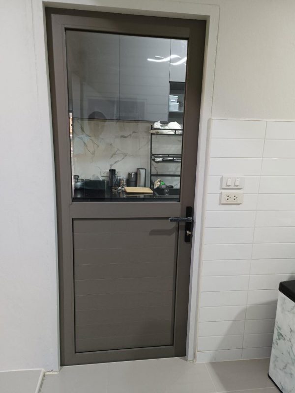 ประตูบานเปิดเดี่ยวแบบทึบ พร้อมช่องแสงกระจกฝ้าในตัว