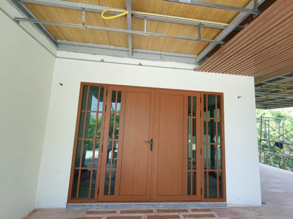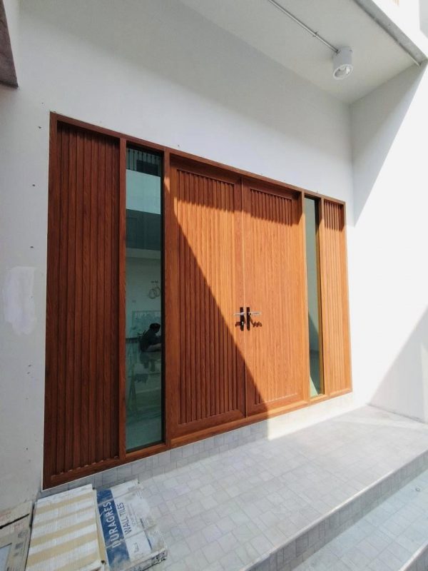 อลูมิเนียมสีลายไม้สักทอง ชุดยูโรโปรไฟล์ ยี่ห้อเมืองทอง