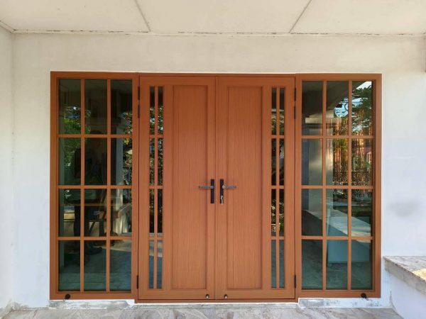 ชุดประตูบานเปิดคู่แบบทึบ พร้อมช่องแสงด้านข้าง