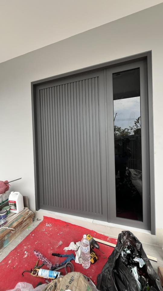 ชุดประตูบานเปิดลูกฟูกทึบ พร้อมช่องแสงในตัว