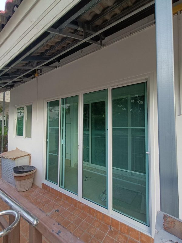 อะลูมิเนียม สีอบขาว พร้อม กระจกเขียวใส