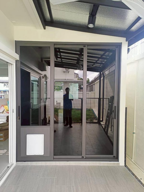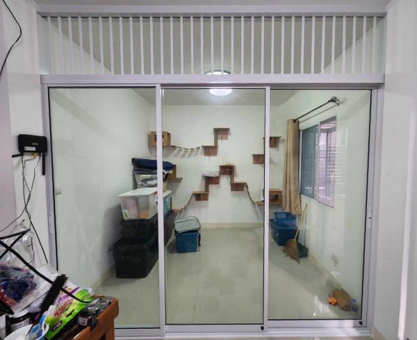 ชุดประตูบานเลื่อนแบ่งสามอิสระ พร้อมทำช่องประตูสำหรับสัตว์เลี้ยง