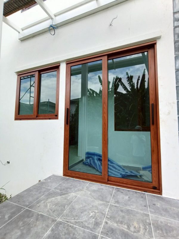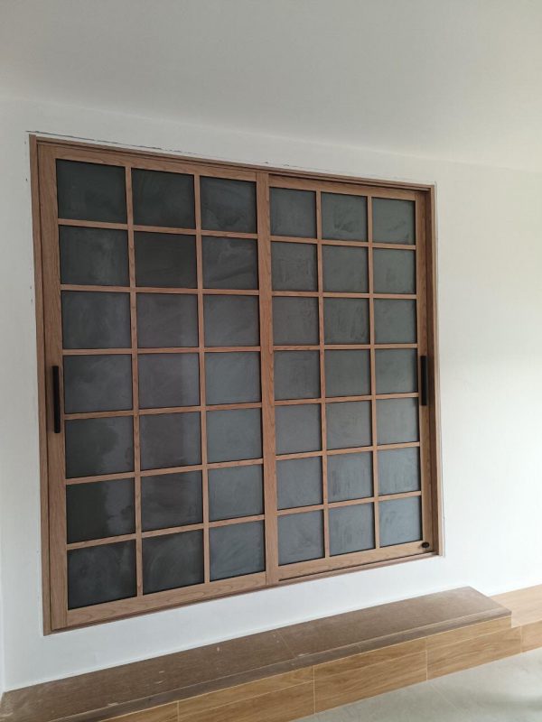 อลูมิเนียมสีลายไม้สักทอง ชุดยูโรโปรไฟล์ ยี่ห้อเมืองทอง