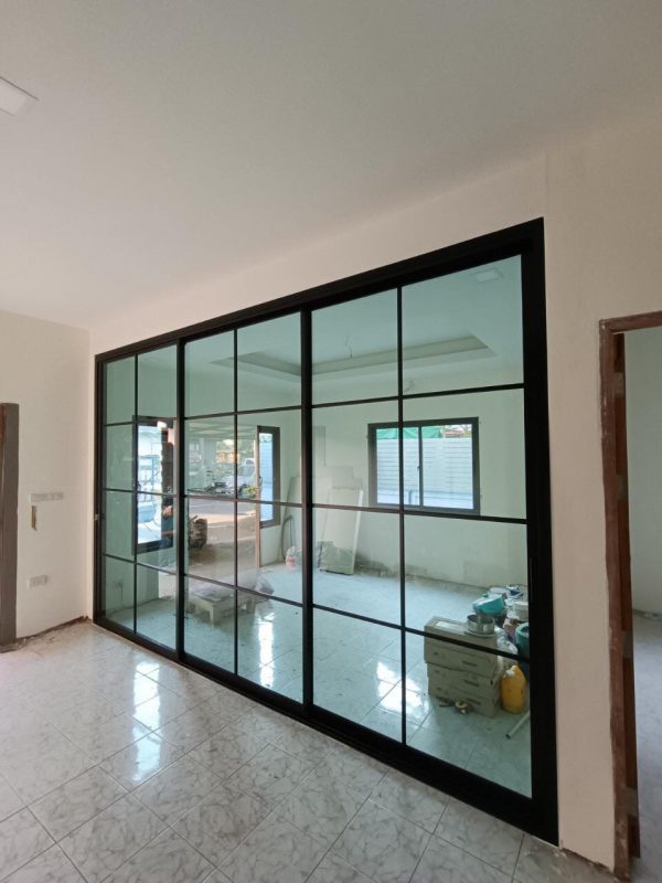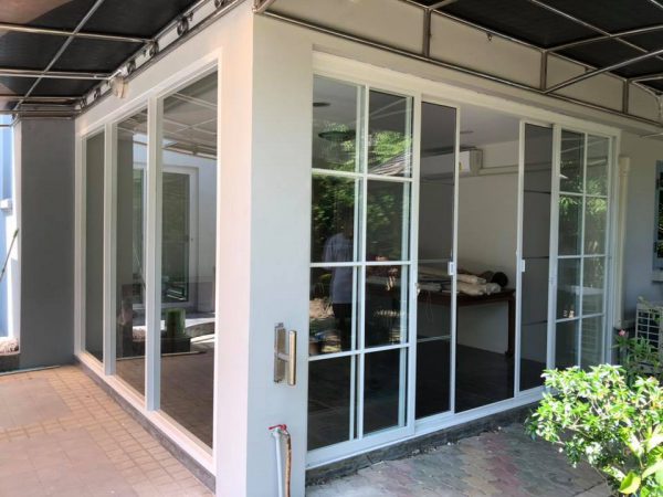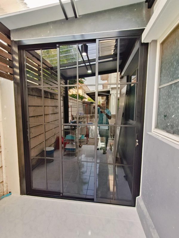 ประตูบานเลื่อนและบานเปิดในตัว พร้อมช่องแสงด้านข้าง