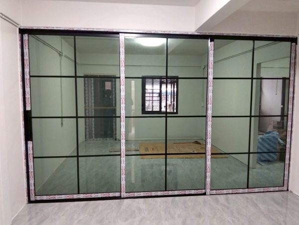 งานบานเลื่อนสาม เลื่อนอิสระกระจกเท็มเปอร์