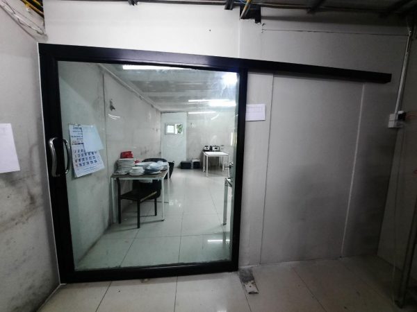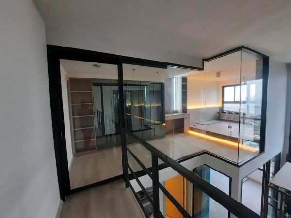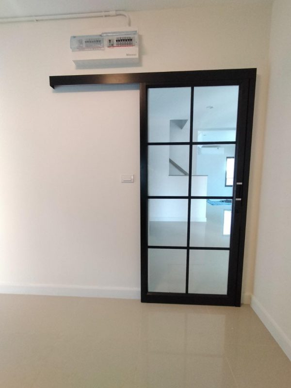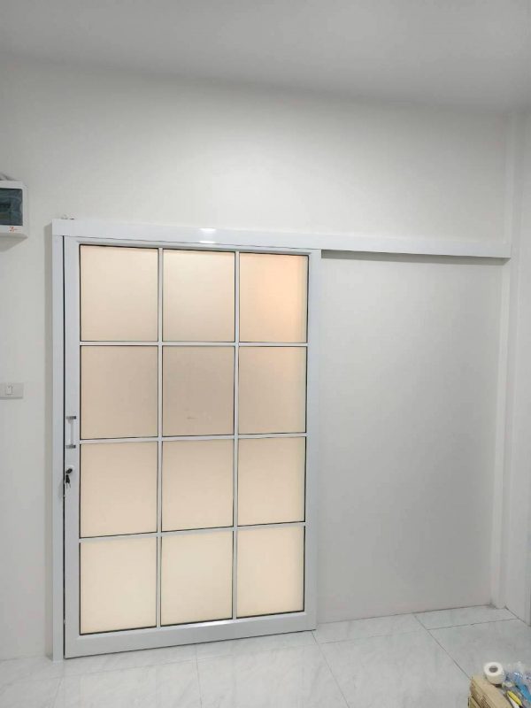 ประตูบานเลื่อนรางแขวนกระจกฝ้า