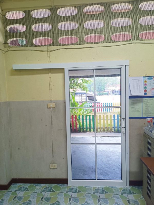 ประตูบานเลื่อนเดี่ยวรางบนพร้อมช่องแสง