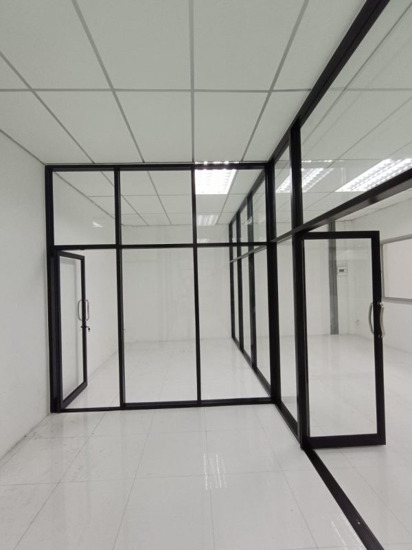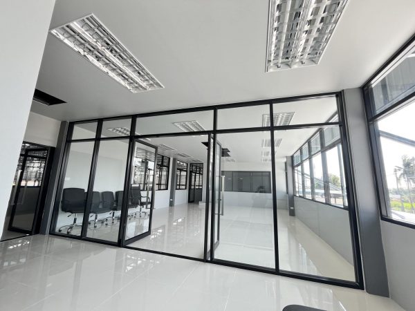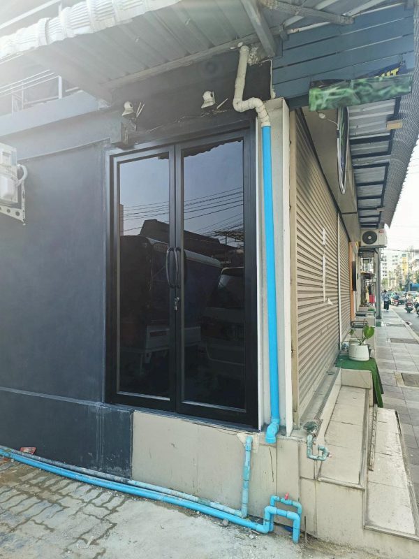 โครงอลูมิเนียมสีดำ กระจกสีชาดำ