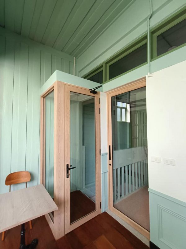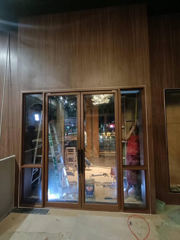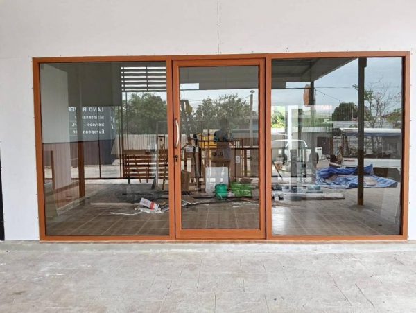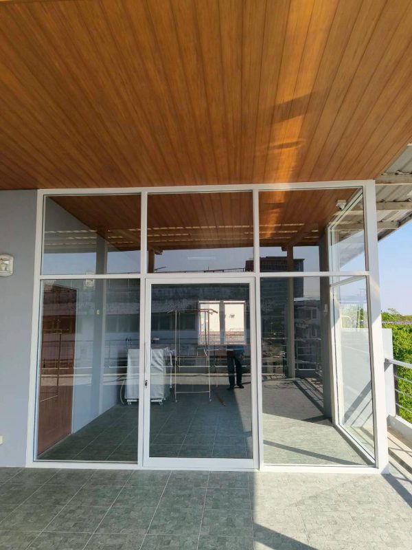 อลูมิเนียมสีลายไม้ไผ่ขาวกระจกใส