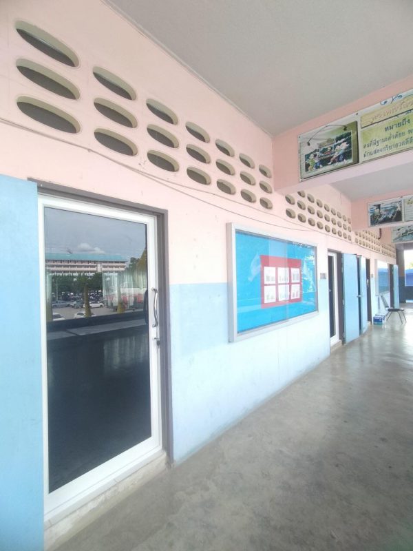 ประตูบานสวิงเดี่ยวเปิดเข้าออกสองทาง พร้อมแปะลายลูกฟัก