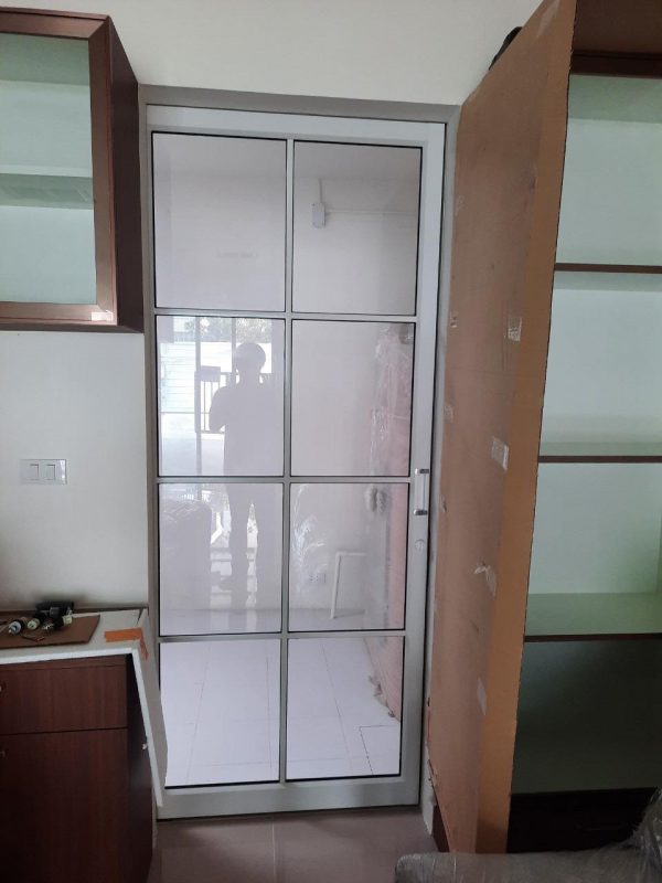 ชุดประตูบานเลื่อนรางบนพร้อมแปะลายลูกฟัก