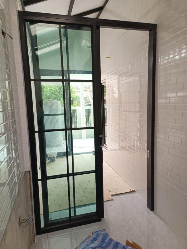 ชุดประตูบานเลื่อนรางแขวนบนพร้อมช่องแสงข้างและแปะซอยลูกฟัก