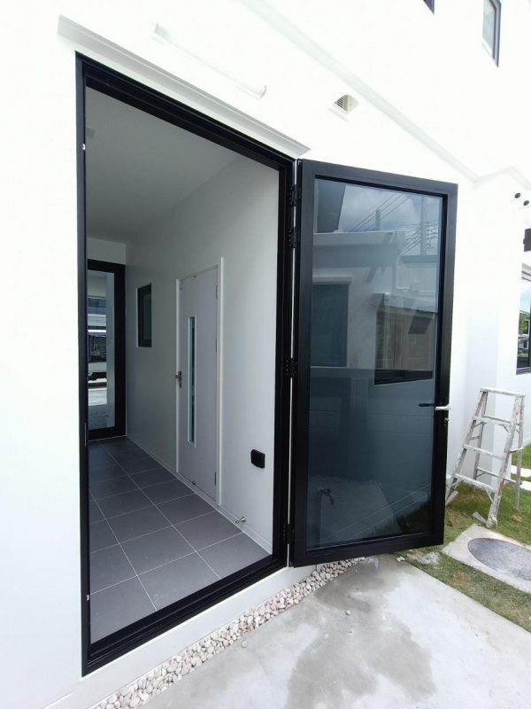 ประตูบานเปิดแบบมีบังใบระบบมัลติพ้อยท์ล็อก+เดดล็อก และบานเปิดเสาหน้า4นิ้ว