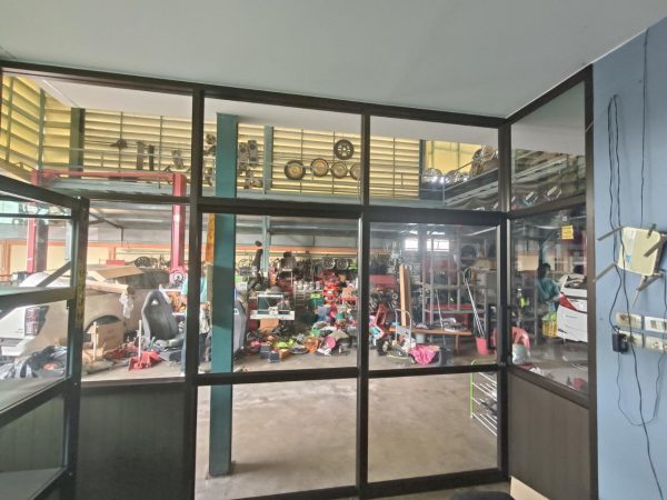 ประตูบานเลื่อนรางแขวนบน พร้อมช่องแสง และลูกฟูกล่าง