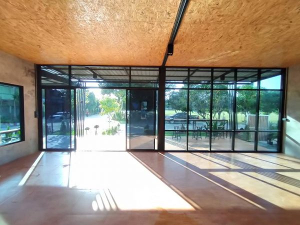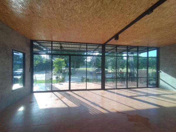 ชุดประตูบานเลื่อนแบ่งสี่เปิดกลาง พร้อมช่องแสงหน้าต่างบานเปิดข้าง