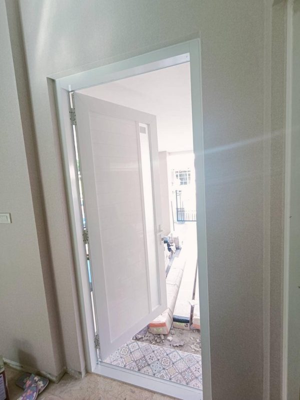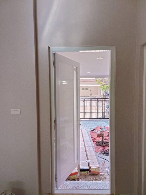 ชุดประตูบานเปิด ลูกฟูกเรียบพร้อมช่องแสงข้าง