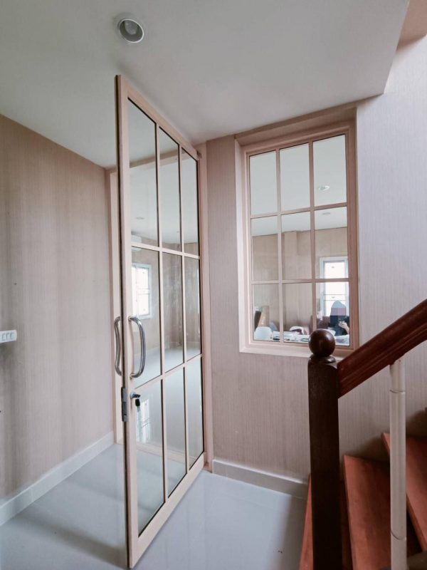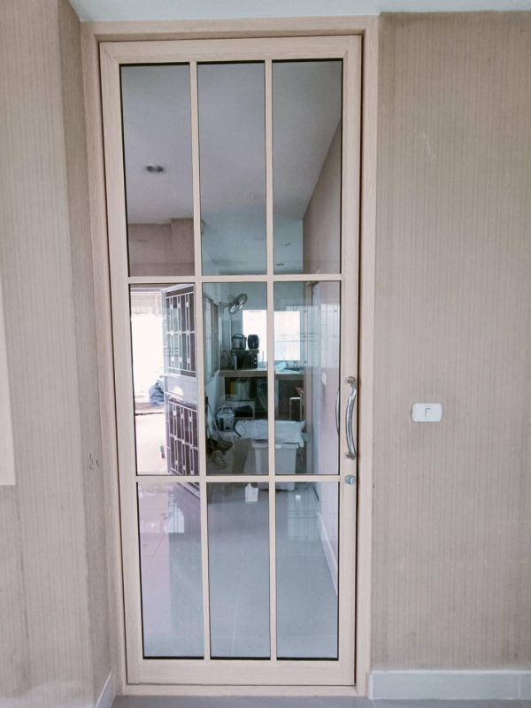 ชุดประตูบานสวิง ช่องแสง พร้อมแปะลายลูกฟัก