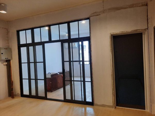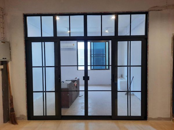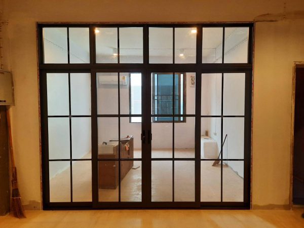 ประตูบานเลื่อนแบ่งสี่เลื่อนสองบานพร้อมช่องแสงรวมมุ้ง