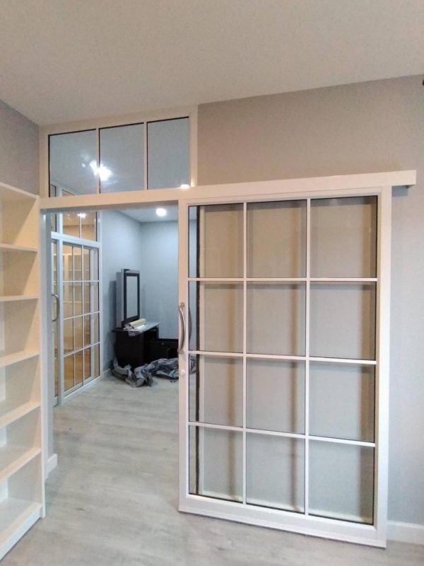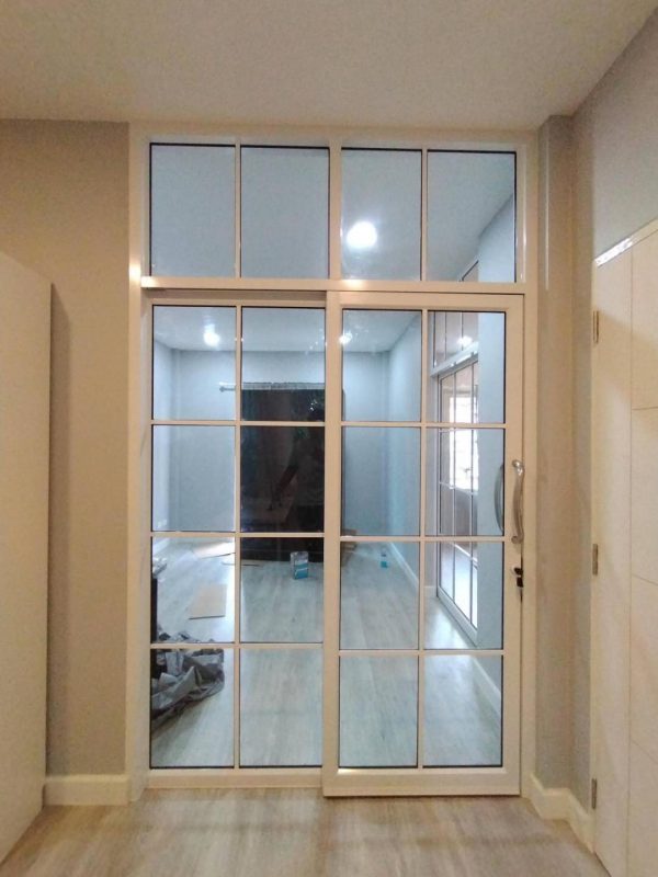 ประตูบานเลื่อนรางแขวนพร้อมช่องแสง