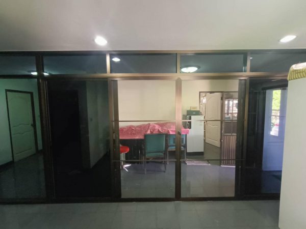 ชุดประตูบานเลื่อนเปิดกลาง พร้อมช่องแสงข้างรวมมุ้ง