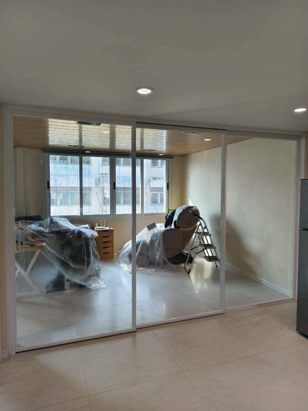 ชุดประตูบานเลื่อนเก็บ แบ่งสาม เลื่อนสองบาน บานตายหนึ่งบาน