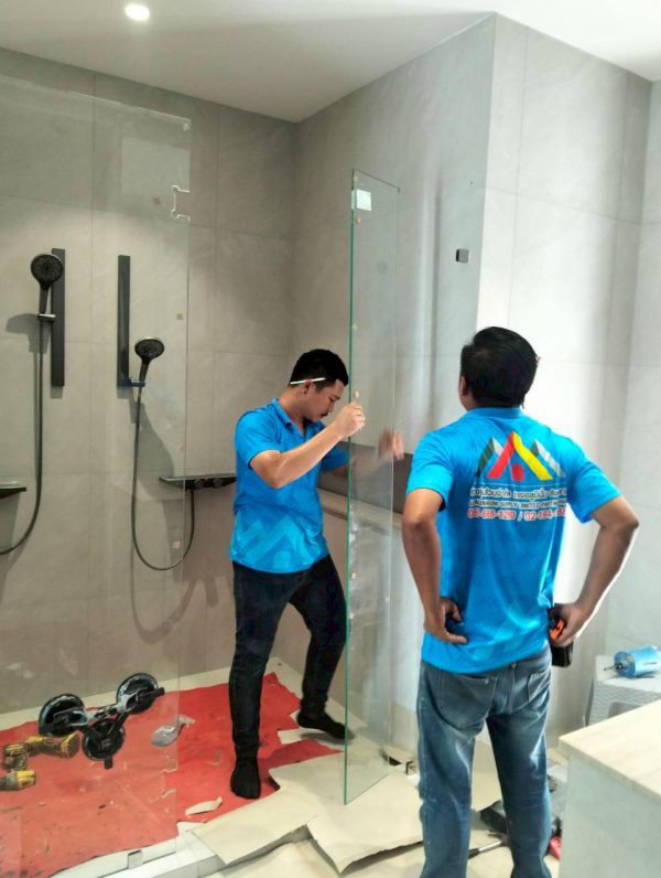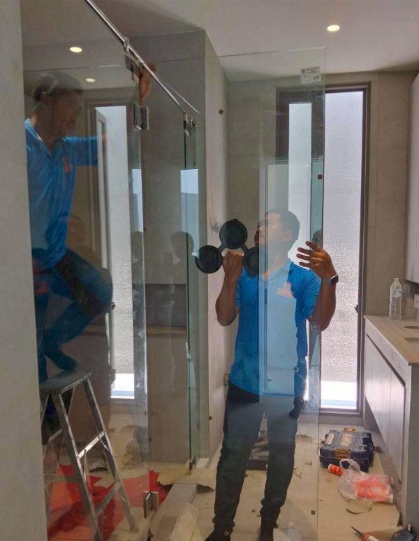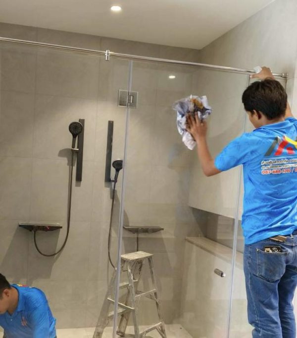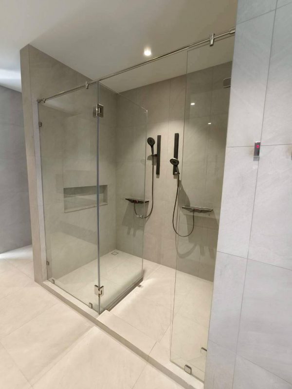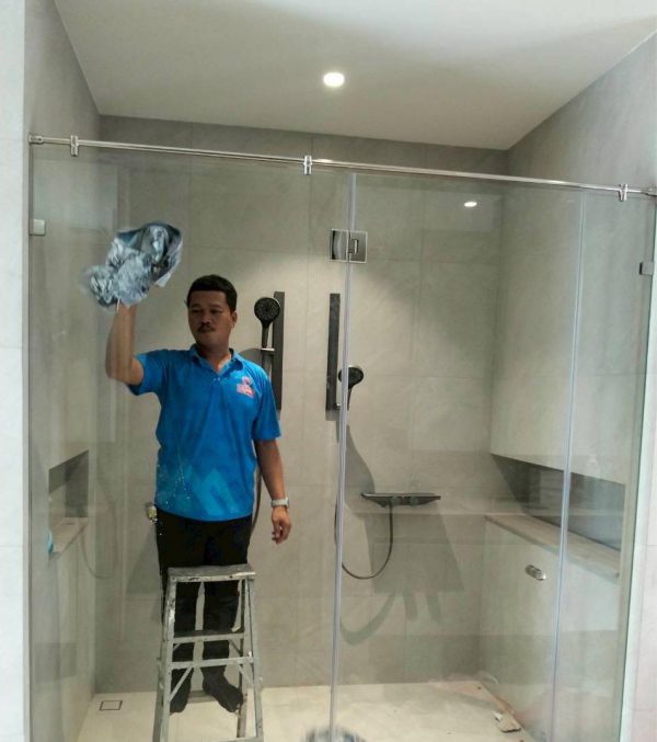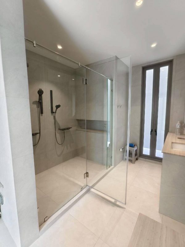 กั้นกระจกบานชาวเวอร์ห้องน้ำ ชุดประตูบานเปิด พร้อมช่องแสงข้าง