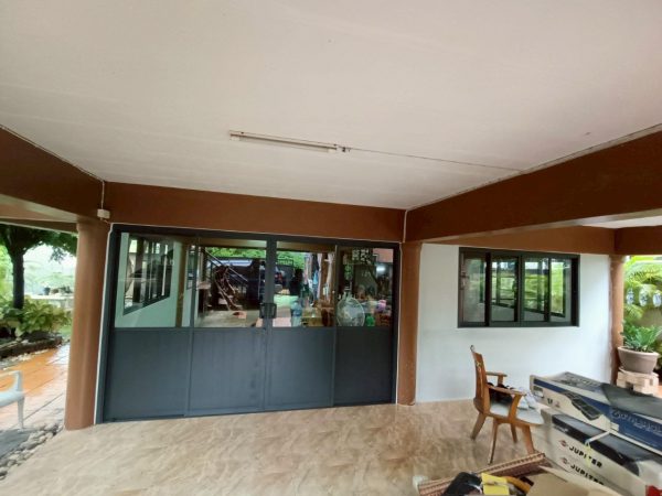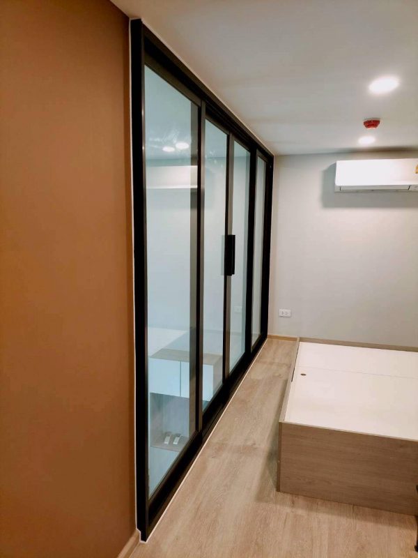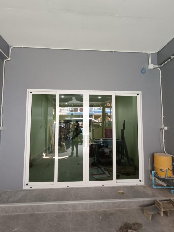 ประตูบานเลื่อนแบ่ง 4 เปิดกลาง (ลูกฟูกทึบบานล่าง)