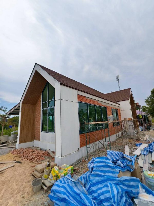 งานกระจกแผงใหญ่หน้าจั่วด้านหน้าและด้านข้าง กระจกเท็มเปอร์นิรภัย