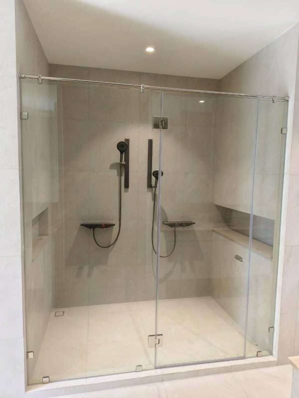 กั้นกระจกบานชาวเวอร์ห้องน้ำ ชุดประตูบานเปิด พร้อมช่องแสงข้าง