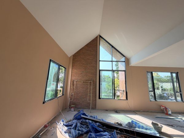 หน้าต่างบานเลื่อนสลับ พร้อมลูกฟูกทึบด้านล่าง