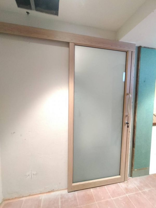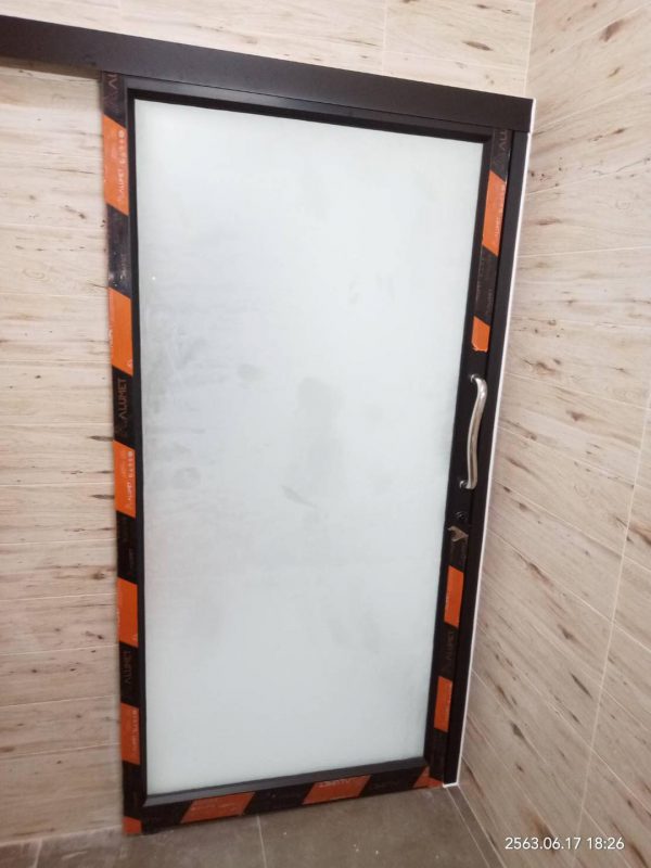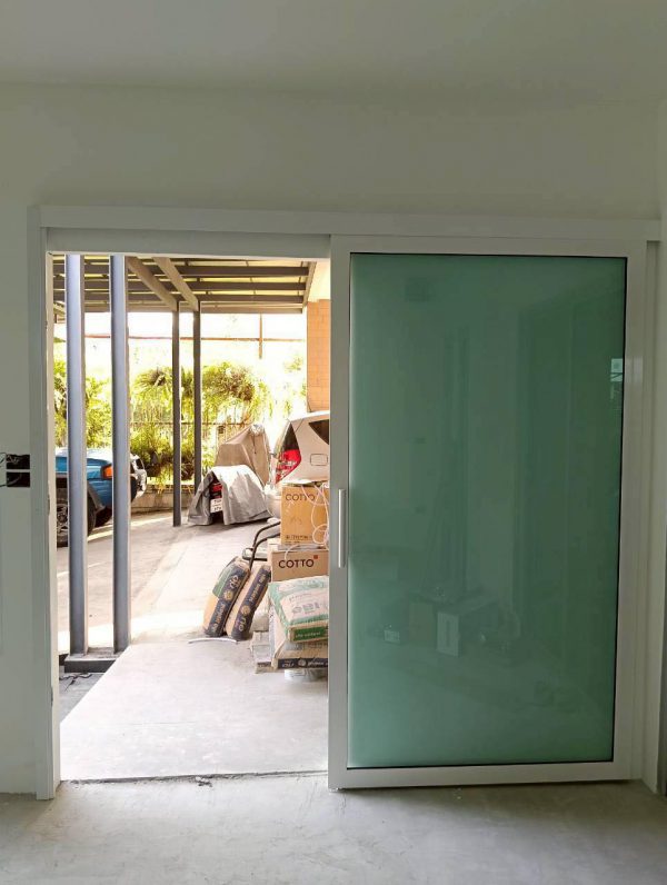 ประตูบานเลื่อนรางแขวนกระจกฝ้า