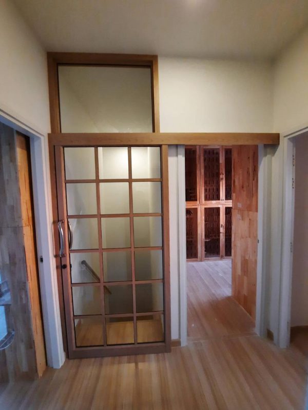 ประตูบานเลื่อนรางแขวนบน พร้อมช่องแสง และลูกฟูกล่าง