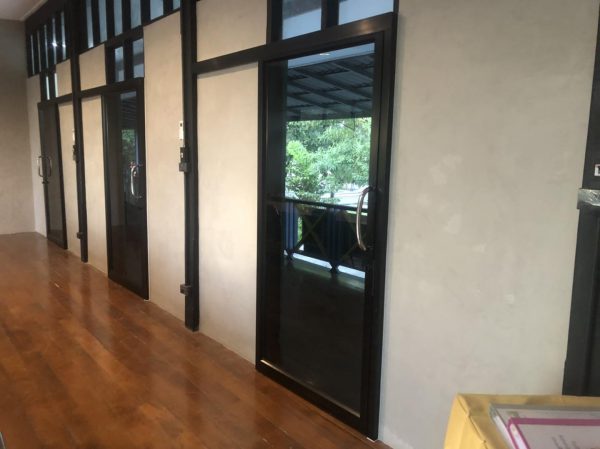 ประตูบานรางแขวนกระจกลอนแก้ว