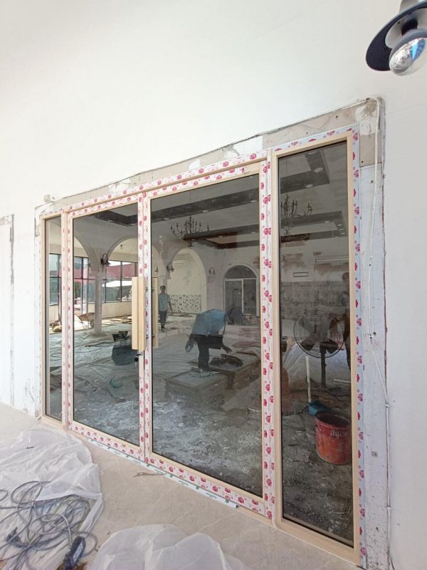 อลูมิเนียมสีลายไม้ไผ่ขาวกระจกใส